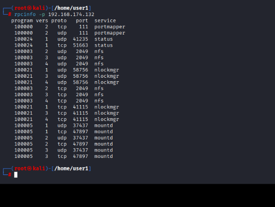 #查询目标主机上注册到rpcbind/portmapper的所有的RPC的服务并显示