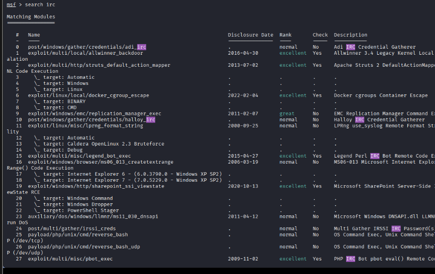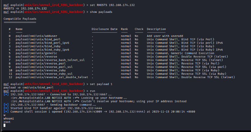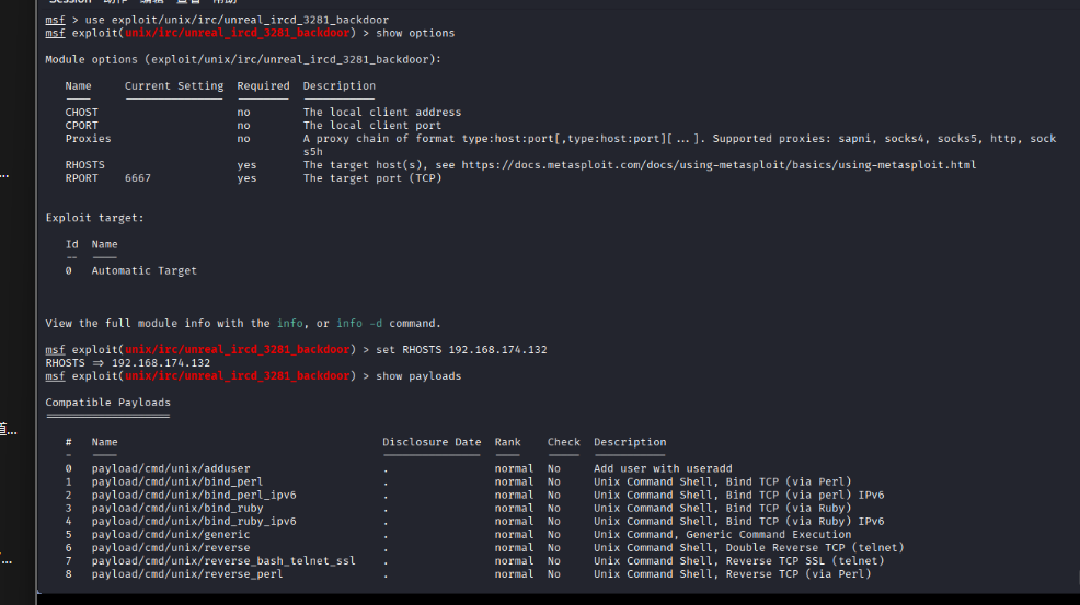 use exploit/unix/irc/unreal_ircd_3281_backdoor