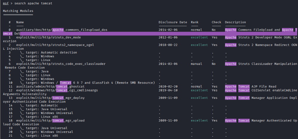可以利用search 来寻找是否存在漏洞利用模块,这个漏洞利用模块怎么理解呢,大白话说就是可以直接用这个模块来进行攻击