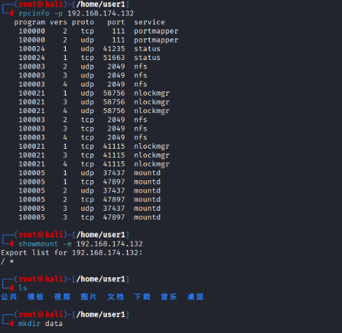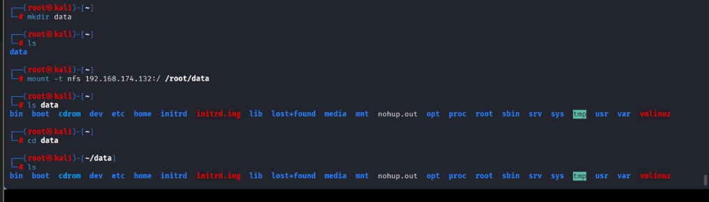 mount -t nfs 192.168.174.132:/ /home/user1/data