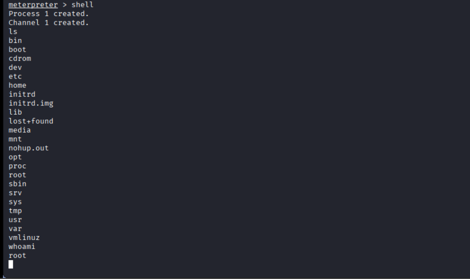 可以看到下图最下面 whoami 显示root,已经成功拿到靶机的root权限了!!