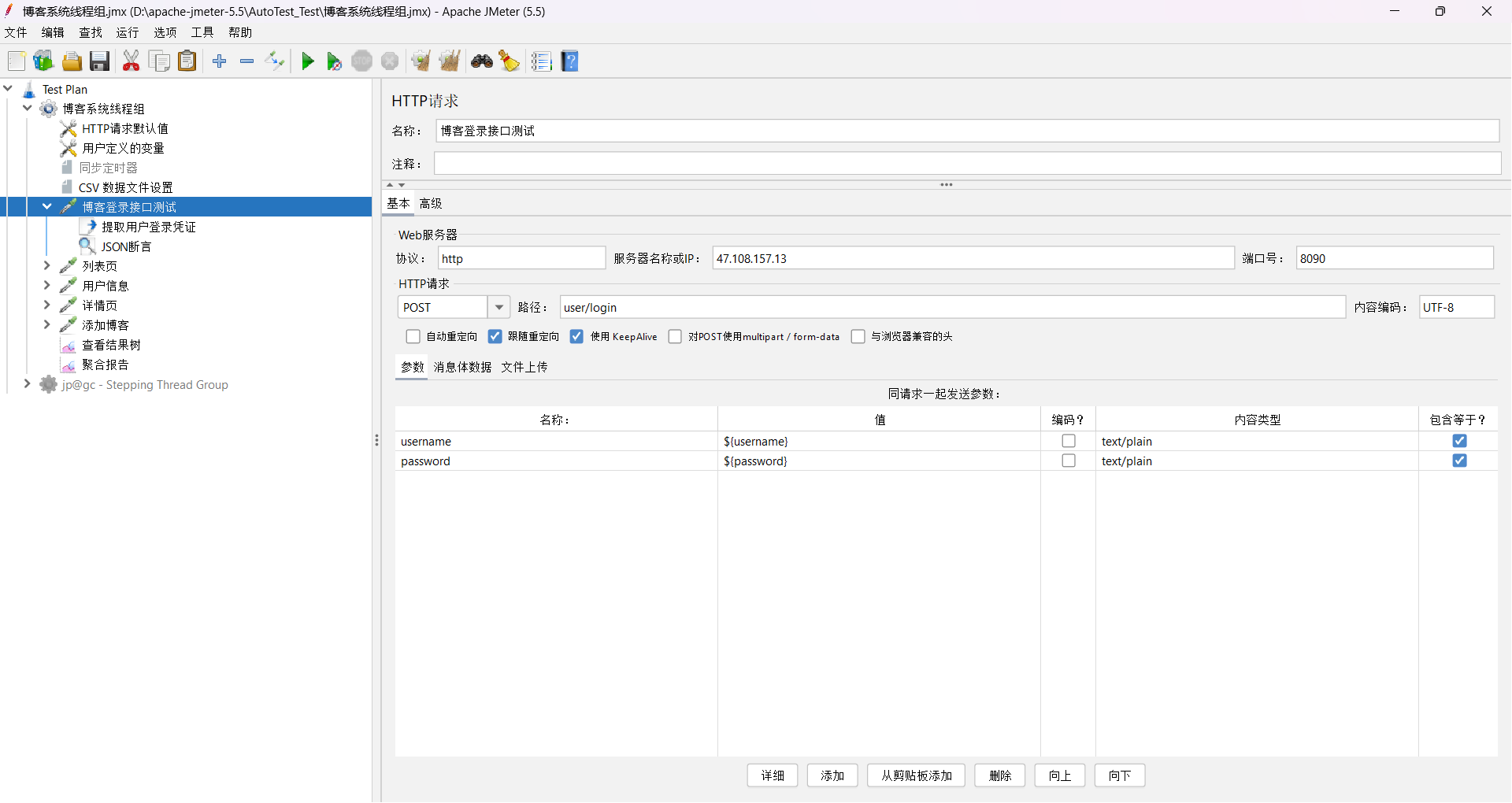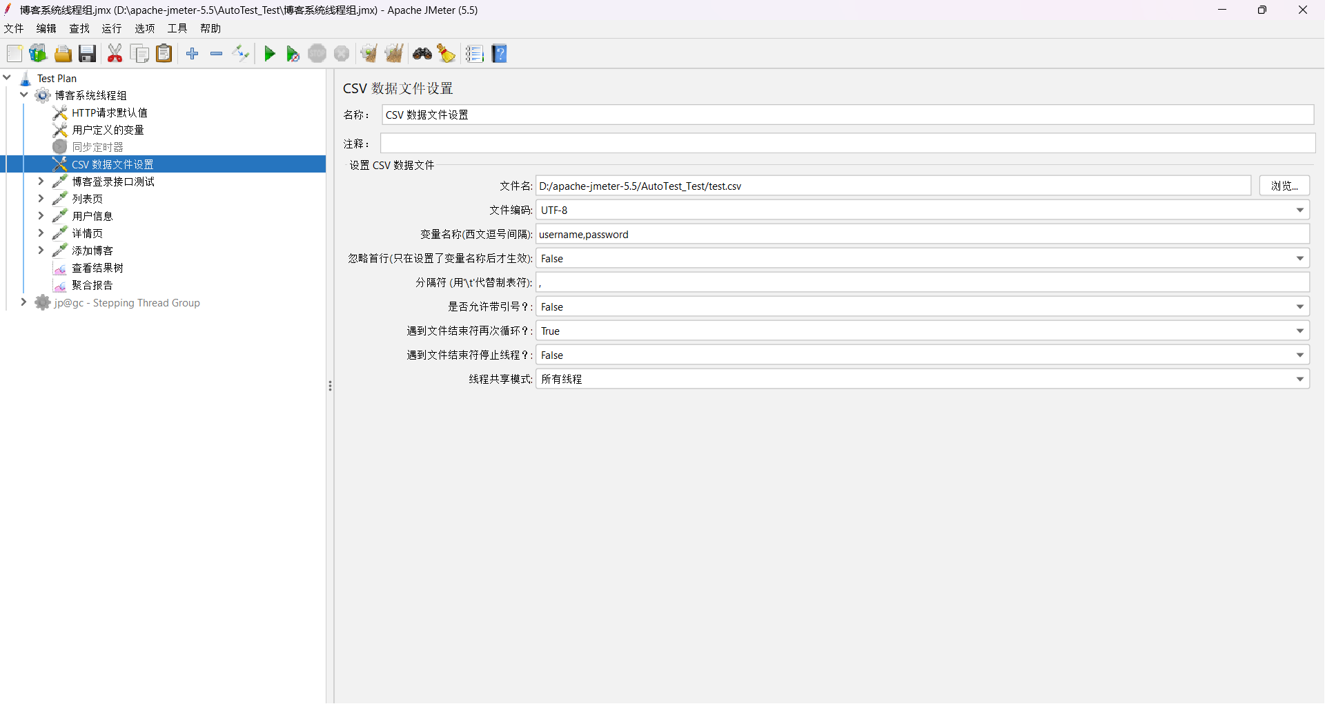 以登陆接口为例,当我们执行登陆接口的性能测试时,⼿动配置了用户名和密码为固定的username和 password,这样子我们的账号密码就手动写死了,然而实际使用中不可能只有⼀个用户登陆,为了模拟更真实的登录环境,我们需要提供更 多的用户username和password来实现登录操作