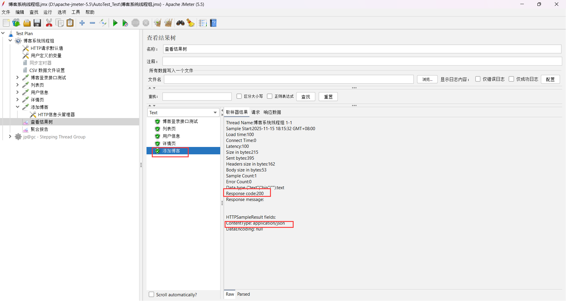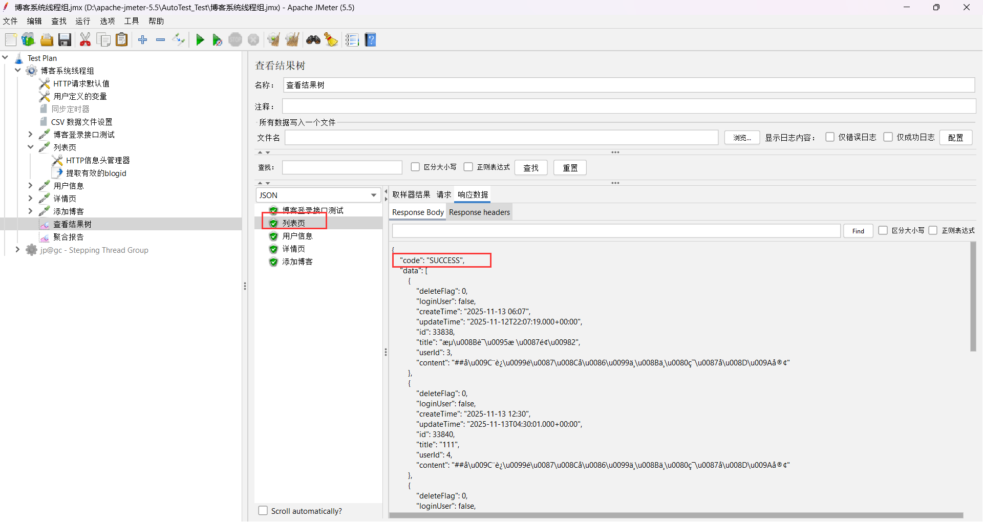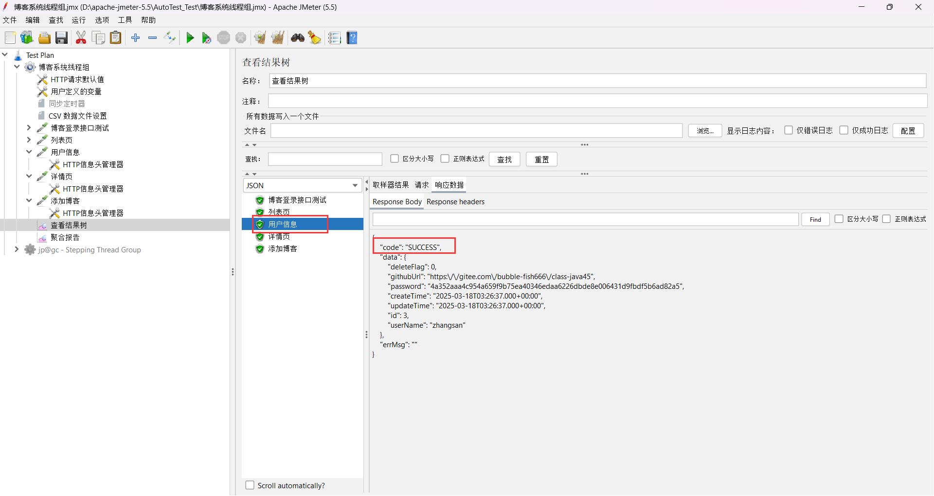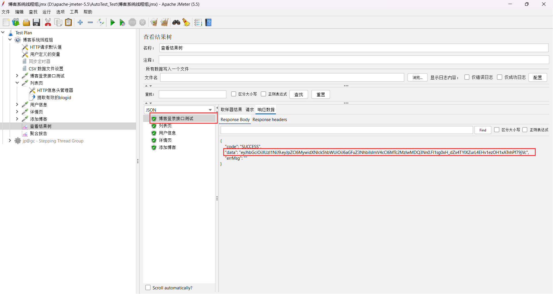 修改完成以后我们就能发现我们在jmeter中也请求成功了: