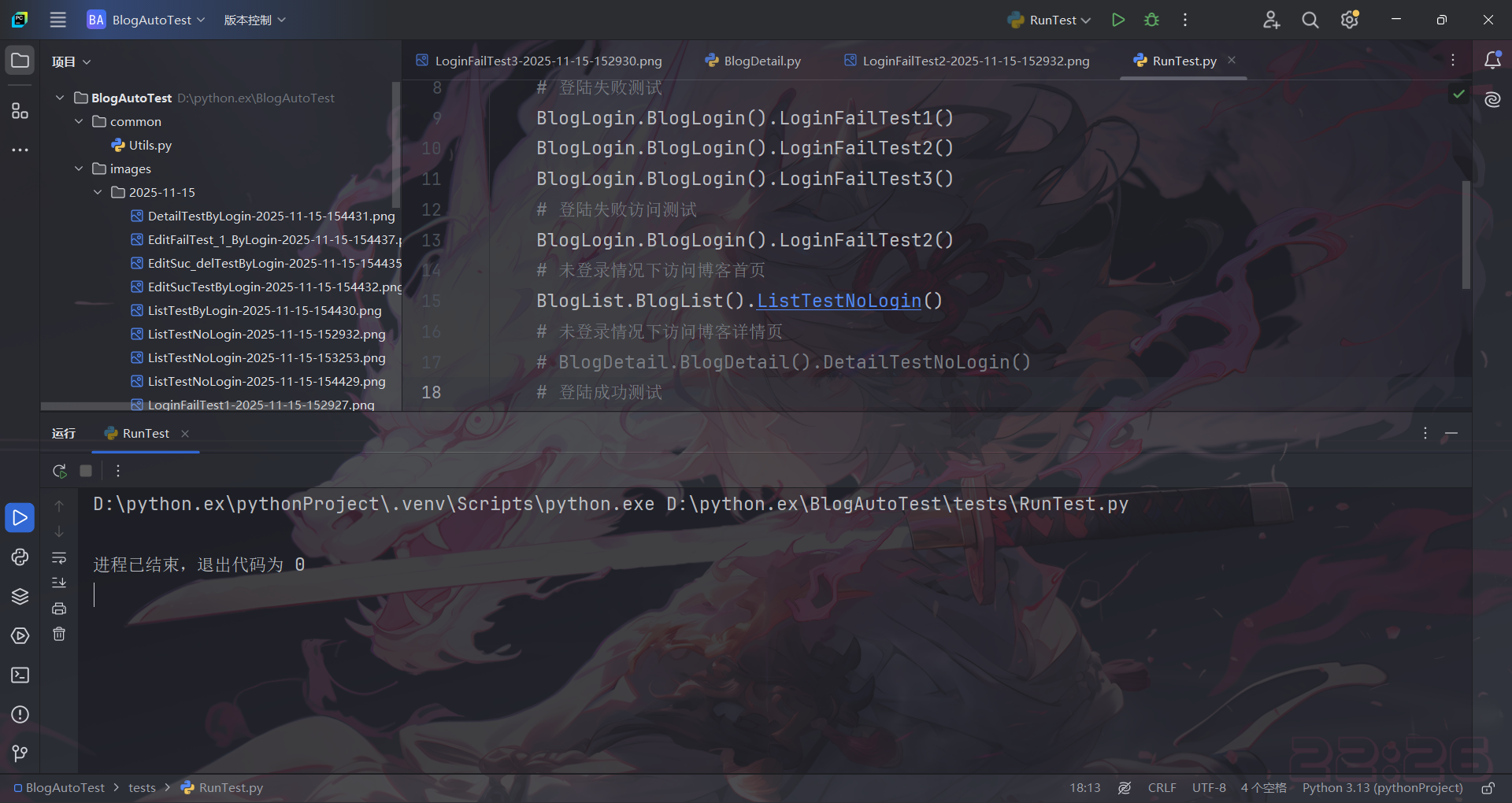 BlogLogin测试类,我们实现了对登录功能的多场景覆盖,包括成功登录和多种异常情况的测试。