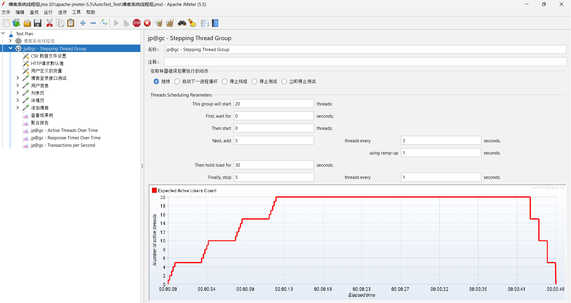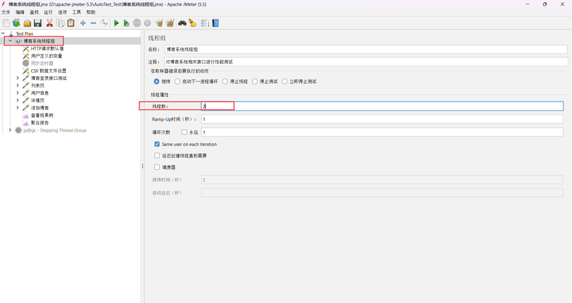 using ramp-up:启动线程的时间;若设置为5秒,表⽰每次启动线程都持续5秒