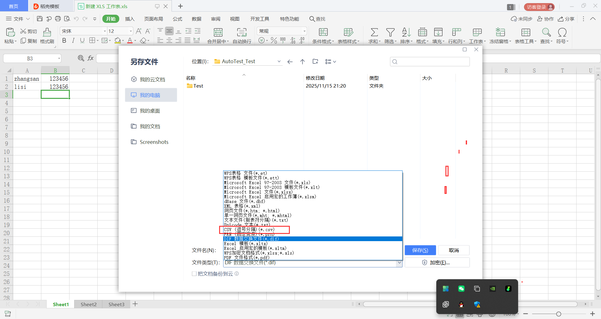 这里我们只实现两个已存在用户的信息进行测试,将excel另存为csv文件存在一个目录下。