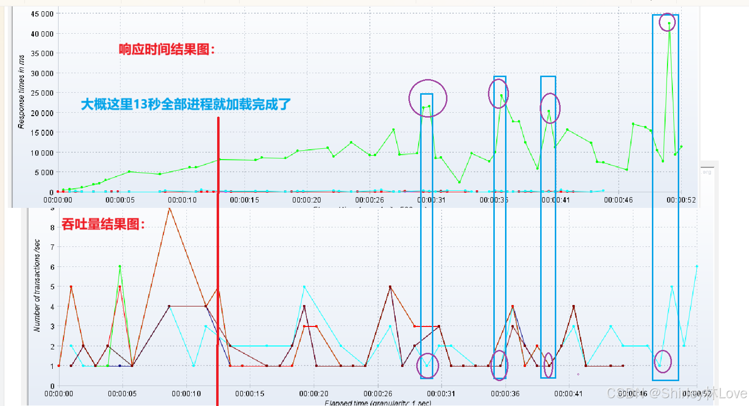 我们从图片直接结果的图片上面也可以看到响应时间和吞吐量的关系:响应时间高,吞吐量就低