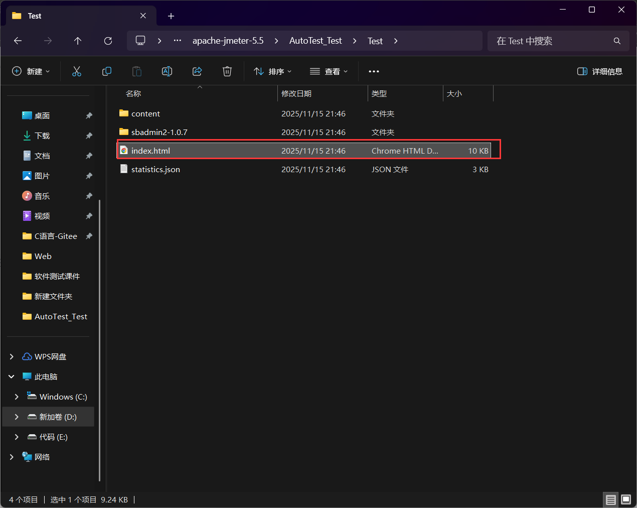 我们会发现在Test目录下生成了一个index.html文件这个里面存储的就是性能报告