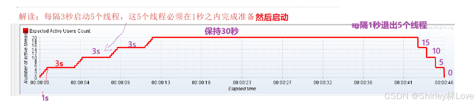 finally,stop/threadsevery:多⻓时间释放多少个线程;若设置为5个和1秒,表⽰持续负载结束之后 每1秒钟释放5个线程