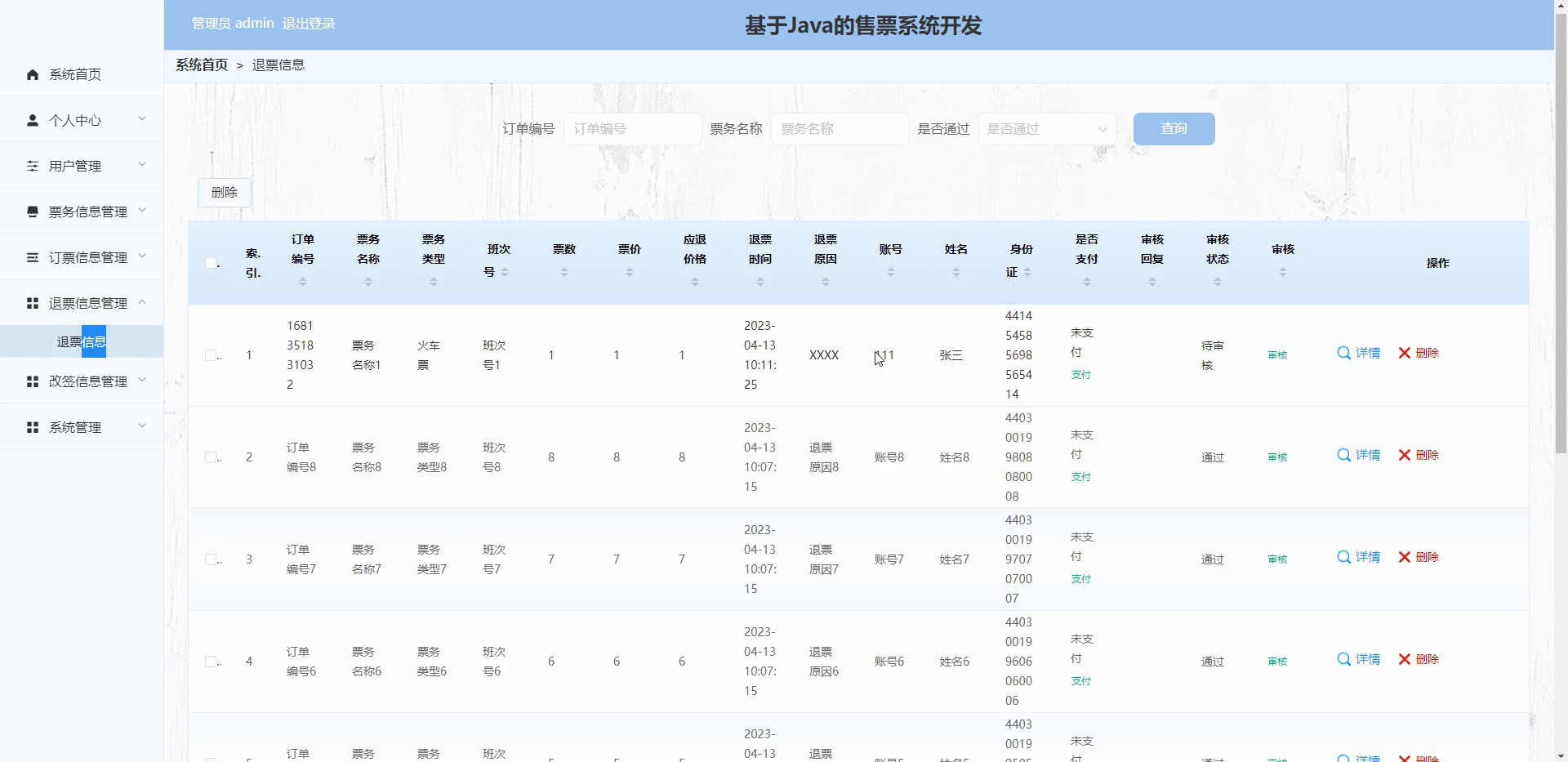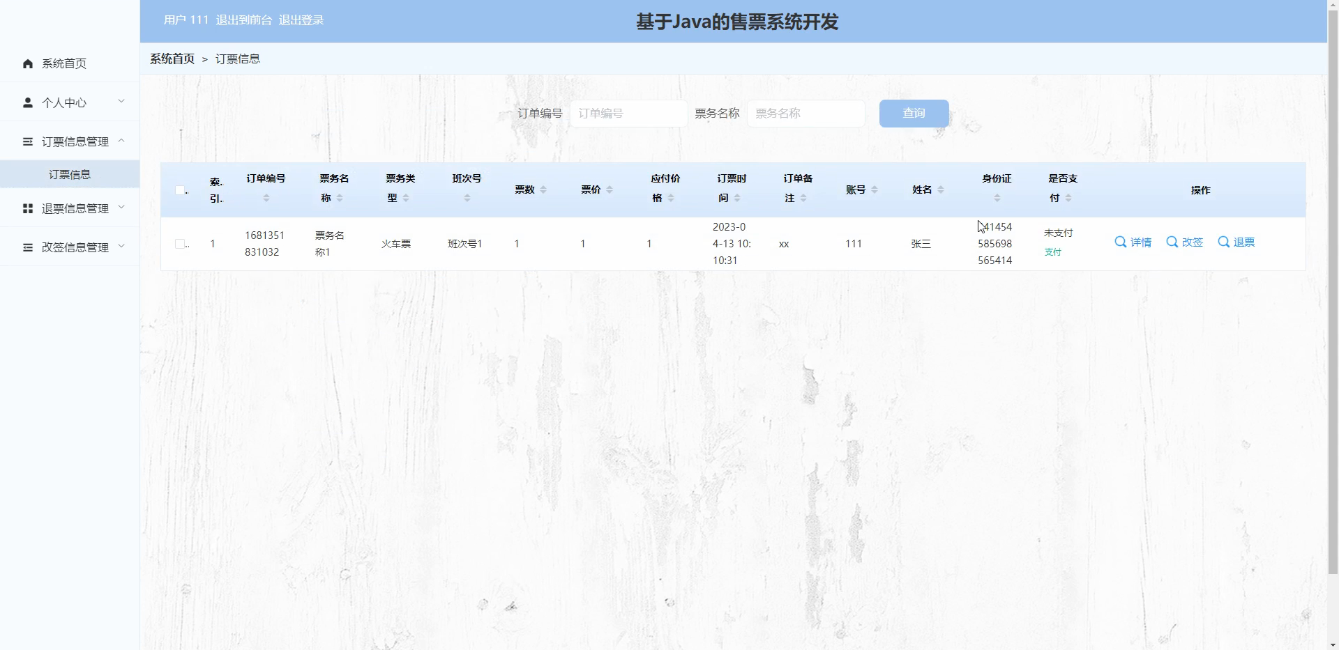 用户,票务信息,订票信息,退票信息,改签信息