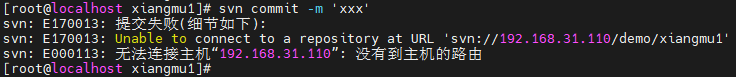 使用SVN commit命令提交代码失败,报错:“无法连接主机...没有到主机的路由”: