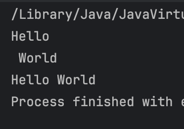 static void main(String[] args) {System.out.println("Hello");System.out.println(" World");System.out.print("Hello");System.out.print(" World");}