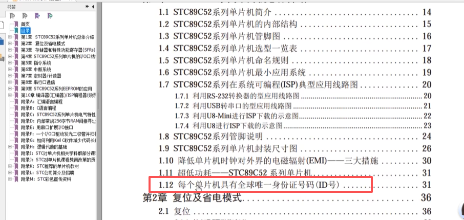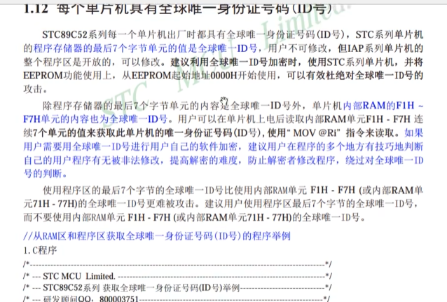 这就是单片机里面也会应用的,我们就把这个51单片机的ID号给读出来,访问ID号需要参考一下数据手册,这里有每个单片机具有全球唯一身份证号码(ID号),
