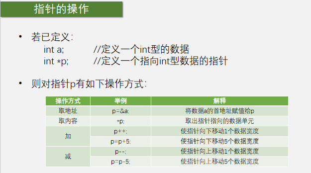 若已定义int a和int *p这两个,则对指针p就会有如上图的那些操作方式;