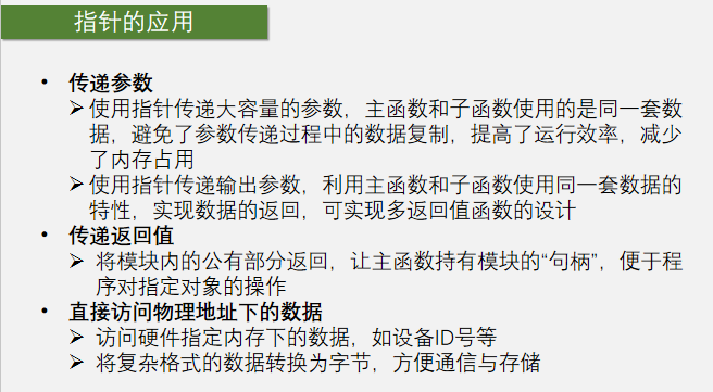 地址传递的第一条优点:就是使用指针传递大容量的参数,主函数和子函数使用的是同一套数据,避免了参数传递过程中的数据复制,提高了运行效率,减少了内存占用;