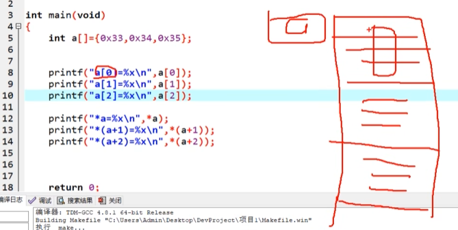 以上的操作和我们定义一个指针操作一模一样,实际上指针就是数组,数组就是指针的另外一种模式,它俩是一模一样的,甚至可以混用,比如你用数组的方法定义,然后用指针的方法区引用,或者用指针的方法定义引用或者用数组的方法去引用都可以。