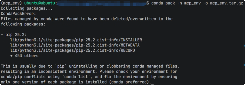 【学习心得】conda打包进行环境迁移遇到conda包和pip包管理冲突问题