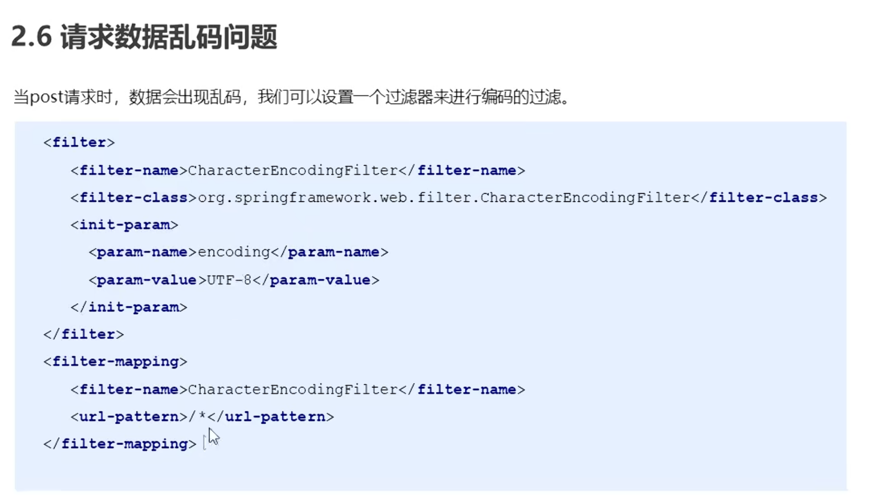 在 Java Web(含 SpringMVC)项目里,只要“字节”→“字符”转换时使用的编码不一致,就会出现乱码。在web.xml里面配置一下全局的filter