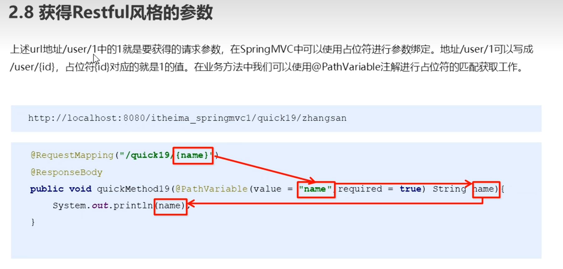 典型 RESTful 风格用法:把资源 ID 直接放在 URL 路径里,而不是 ?id=xxx 。