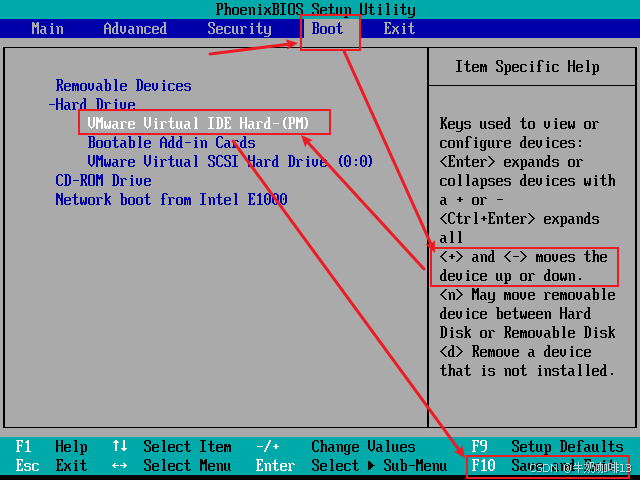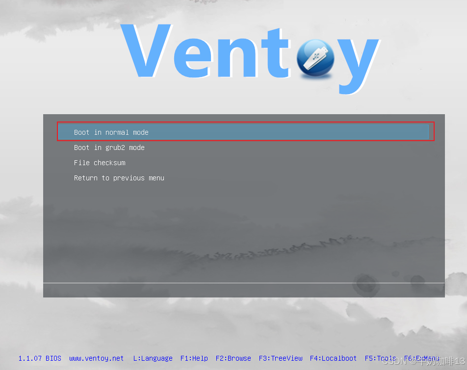 根据各家主板情况不同,进入系统安装模式的按键也不同(一般是F2键或者F12键),在开机后不断按下F2键进入BIOS界面,然后在BIOS界面选择我们的U盘启动器作为第一启动盘后保存退出即可进入系统安装模式后(如:我这里使用VMware虚拟机)