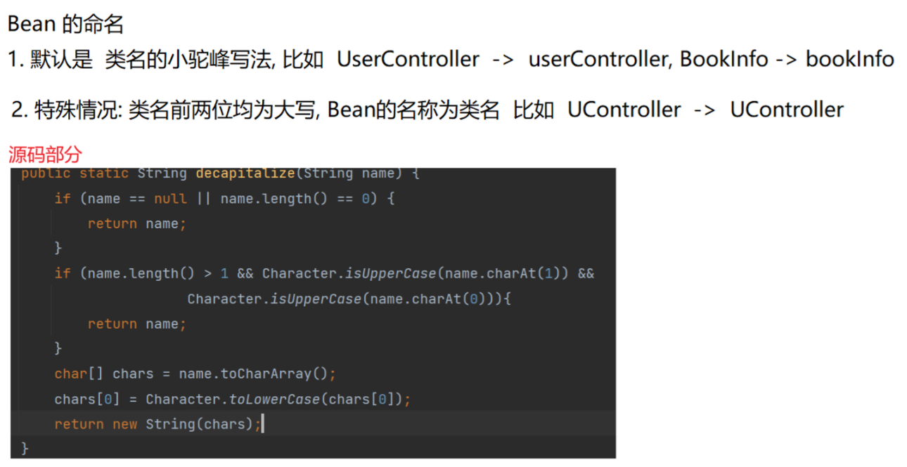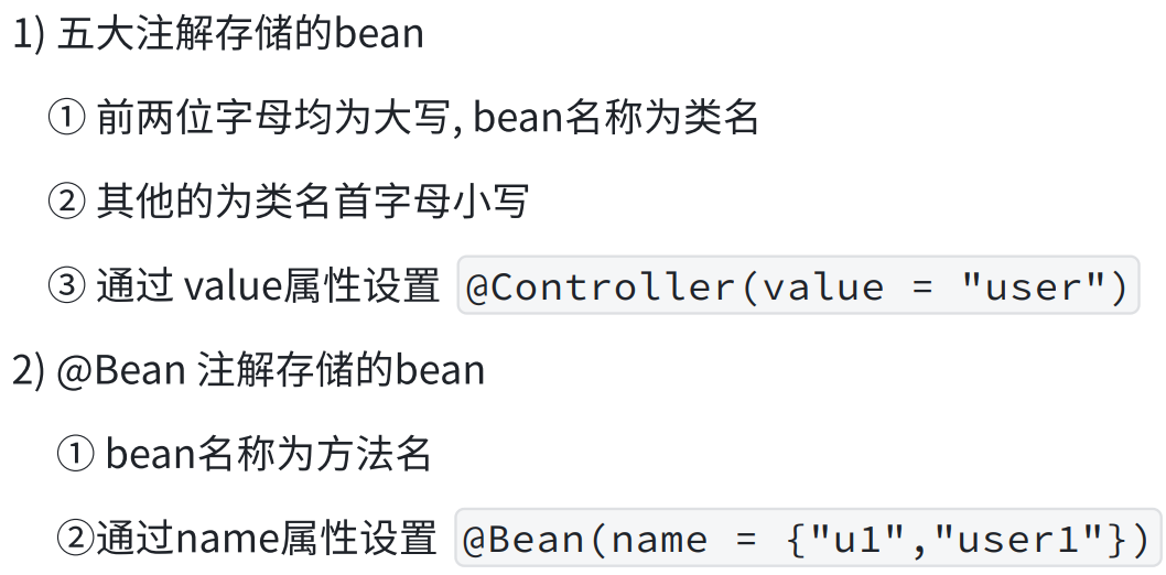 常用的是上述1,2,4种,这三种方式,获取到的bean是⼀样的,其中1,2种都涉及到根据名称来获取对象,bean的名称是什么呢?