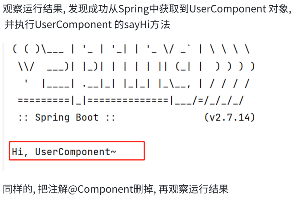 @Componentpublic class UserComponent {public void sayHi() {System.out.println("Hi, UserComponent~");}}