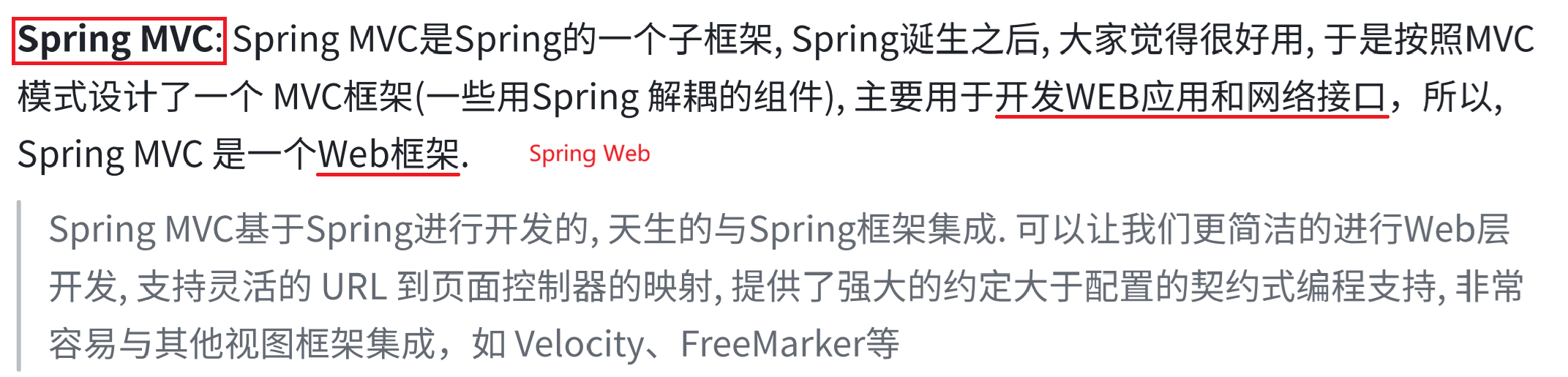 最后⼀句话总结:Spring MVC (火车站)和 Spring Boot(12306软件)都属于Spring(火车),Spring MVC 是基于Spring的一个 MVC 框架,而Spring Boot是基于Spring的一套快速开发整合包。