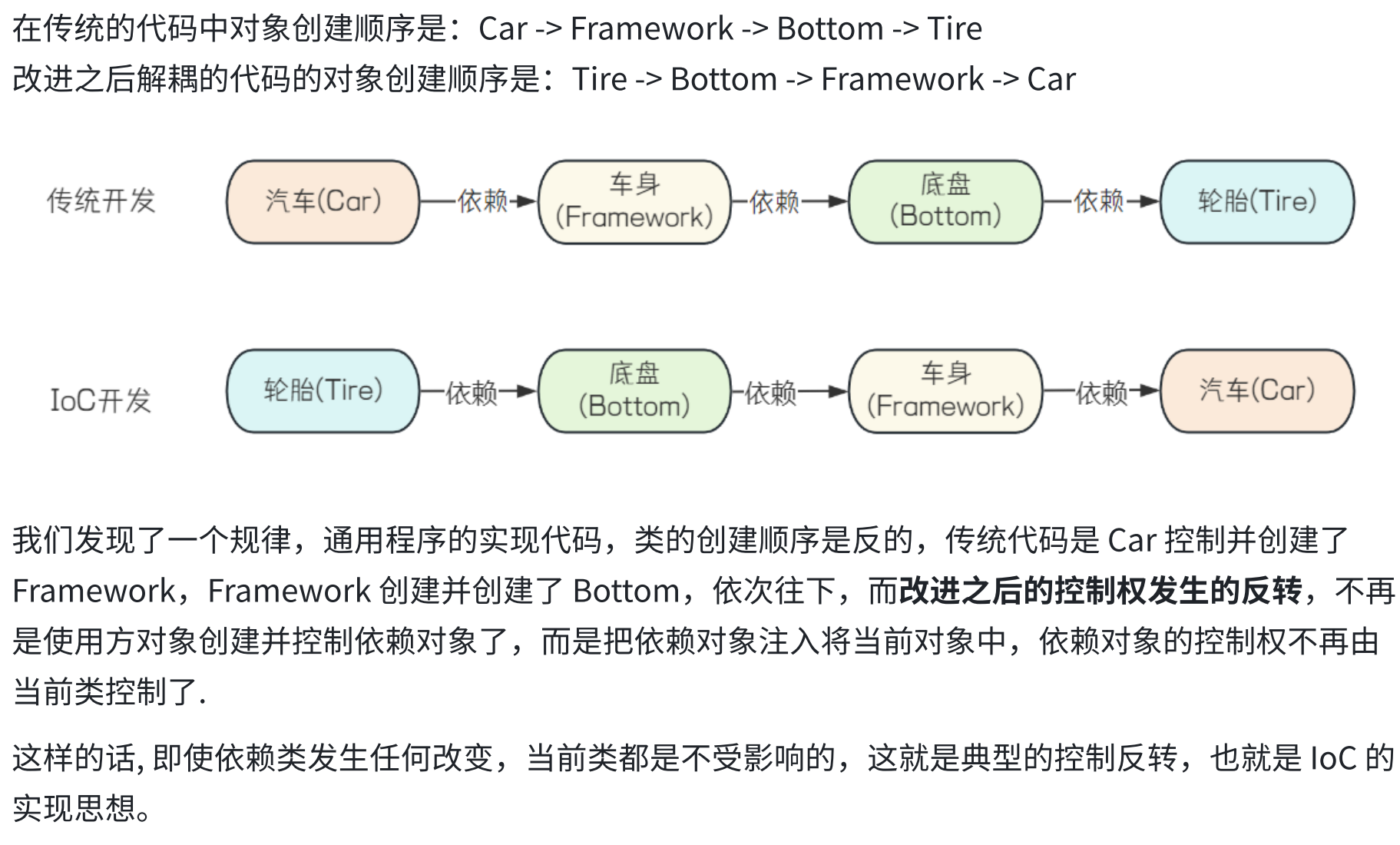 接下来我们通过案例来了解⼀下什么是IoC,需求:造⼀辆车。