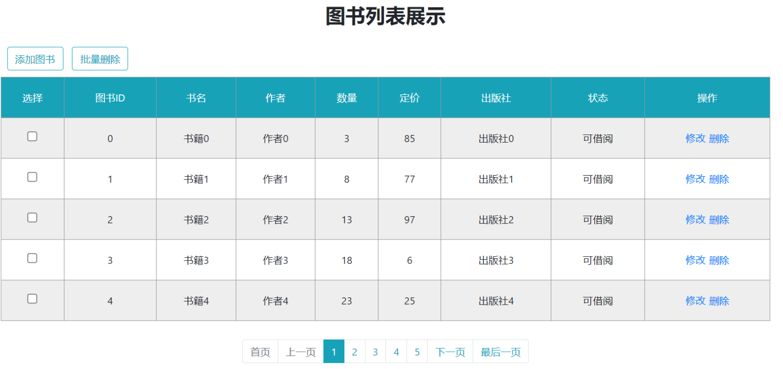 (5)重新运行程序 http://127.0.0.1:8080/book_list.html