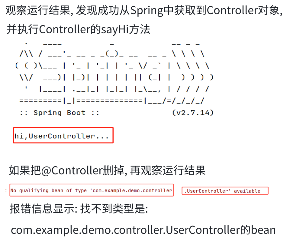 @Controller // 将对象存储到 Spring 中 public class UserController {public void sayHi(){System.out.println("hi,UserController...");}}