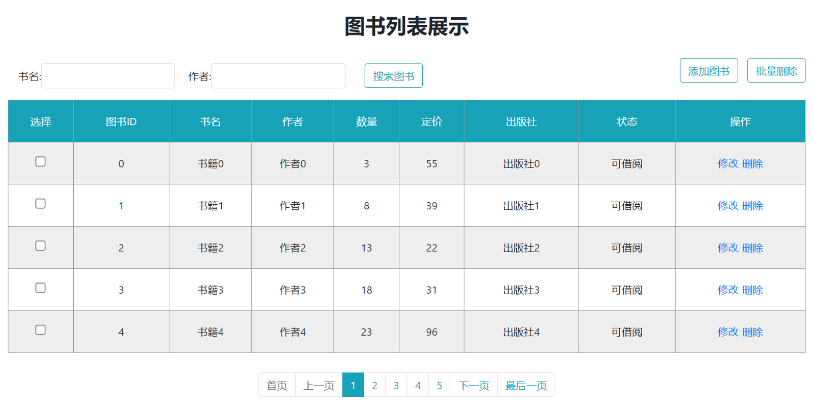 通过上面的学习,我们把前面的图书管理系统代码进行调整。