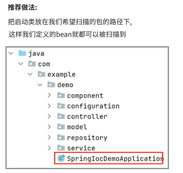 @SpringBootApplicationpublic class SpringIocDemoApplication {public static void main(String[] args) {//获取Spring上下⽂对象 ApplicationContext context = SpringApplication.run(SpringIocDemoApplication.class, args);//从Spring上下⽂中获取对象 UserRepository userRepository = context.getBean(UserRepository.class);//使⽤对象 userRepository.sayHi();}}