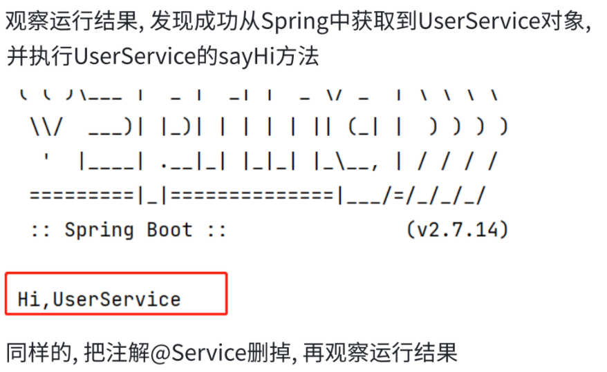 @Servicepublic class UserService {public void sayHi(String name) {System.out.println("Hi," + name);}}