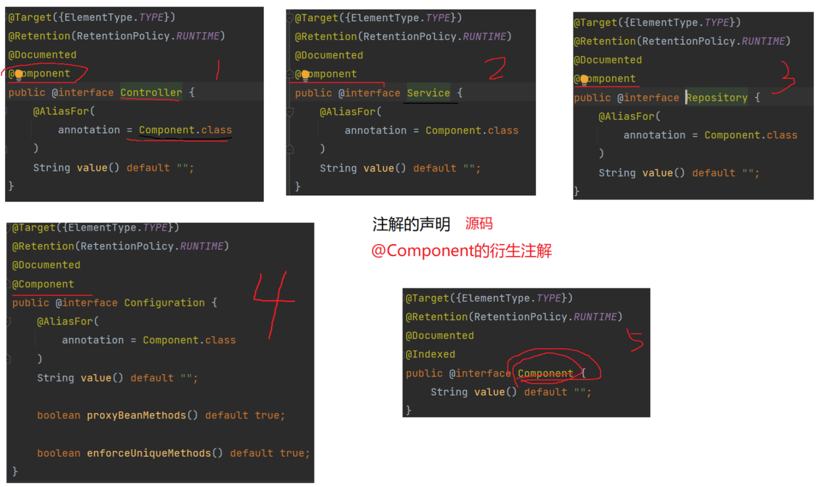 1. 类注解:@Controller、@Service、@Repository、@Component、@Configuration.