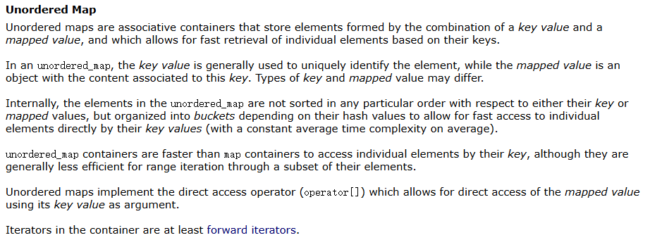 - unordered_map容器通过key访问单个元素要比map快,但它通常在遍历元素子集的范围迭代方面效率较低