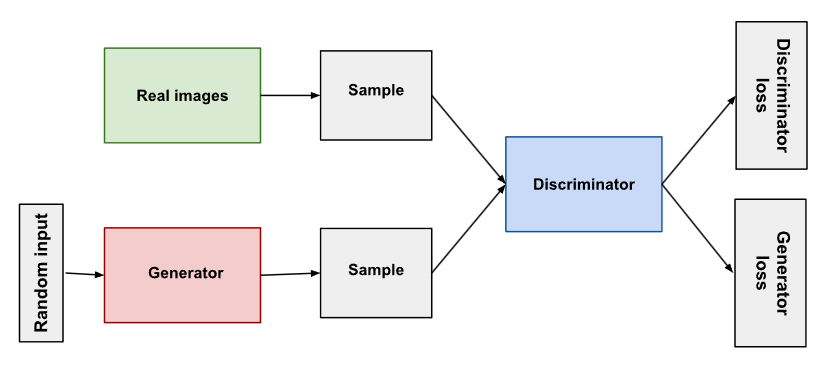 原理:生成对抗网络(Generative Adversarial Network, GAN)由两个相互竞争的子网络组成:生成器(Generator,G)与判别器(Discriminator,D)。其核心思想是通过对抗学习方式,使生成器逐渐学会从输入数据中生成逼真的样本,而判别器则学习区分真实样本与生成样本,从而形成一个动态博弈过程。