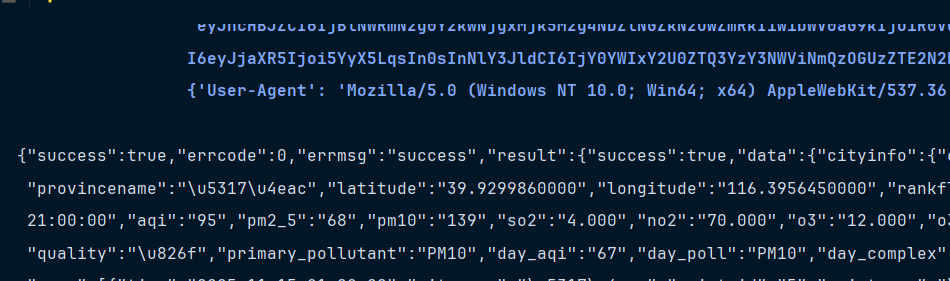 from DrissionPage import ChromiumPageclass Spider(feapder.AirSpider):def __init__(self, page):super(Spider, self).__init__()self.page = pagedef start_requests(self):params=self.page.run_js("return get_params(arguments[0],arguments[1])",'GETDATA',{"city":"北京"})data={'h1zlb1QoZ':params}yield feapder.Request("http://127.0.0.1:8082/apinew/aqistudyapi.php",data=data)def parse(self, request, response):text=response.textresult=self.page.run_js("return get_data(arguments[0])",text)print(result)if __name__ == "__main__":page = ChromiumPage()page.get("http://localhost:63342/study-spider/src/course/25-11-14/aqistudy/index.html")Spider(page).start()