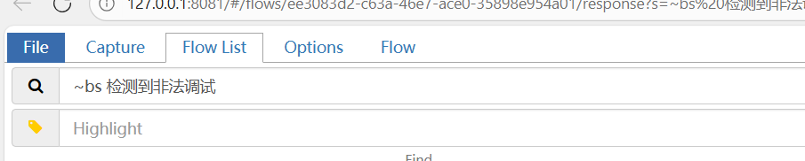也可以在mitmweb打开的页面中搜索,关键字,~bs是搜索响应的内容