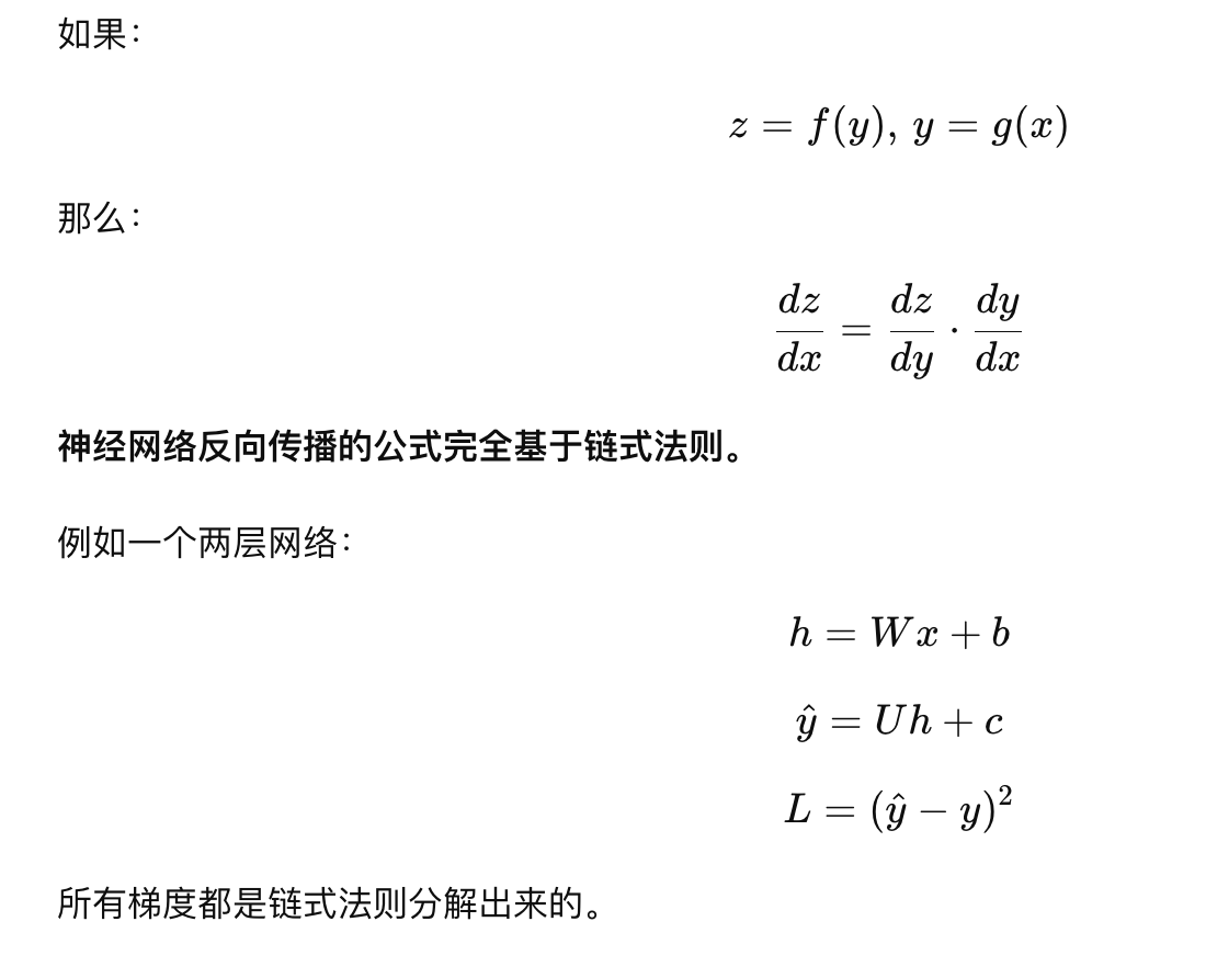 深度学习的网络层层嵌套,需要用链式法则从输出把梯度传回输入。