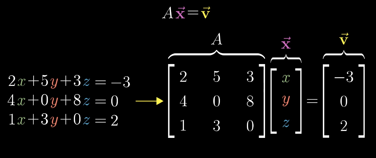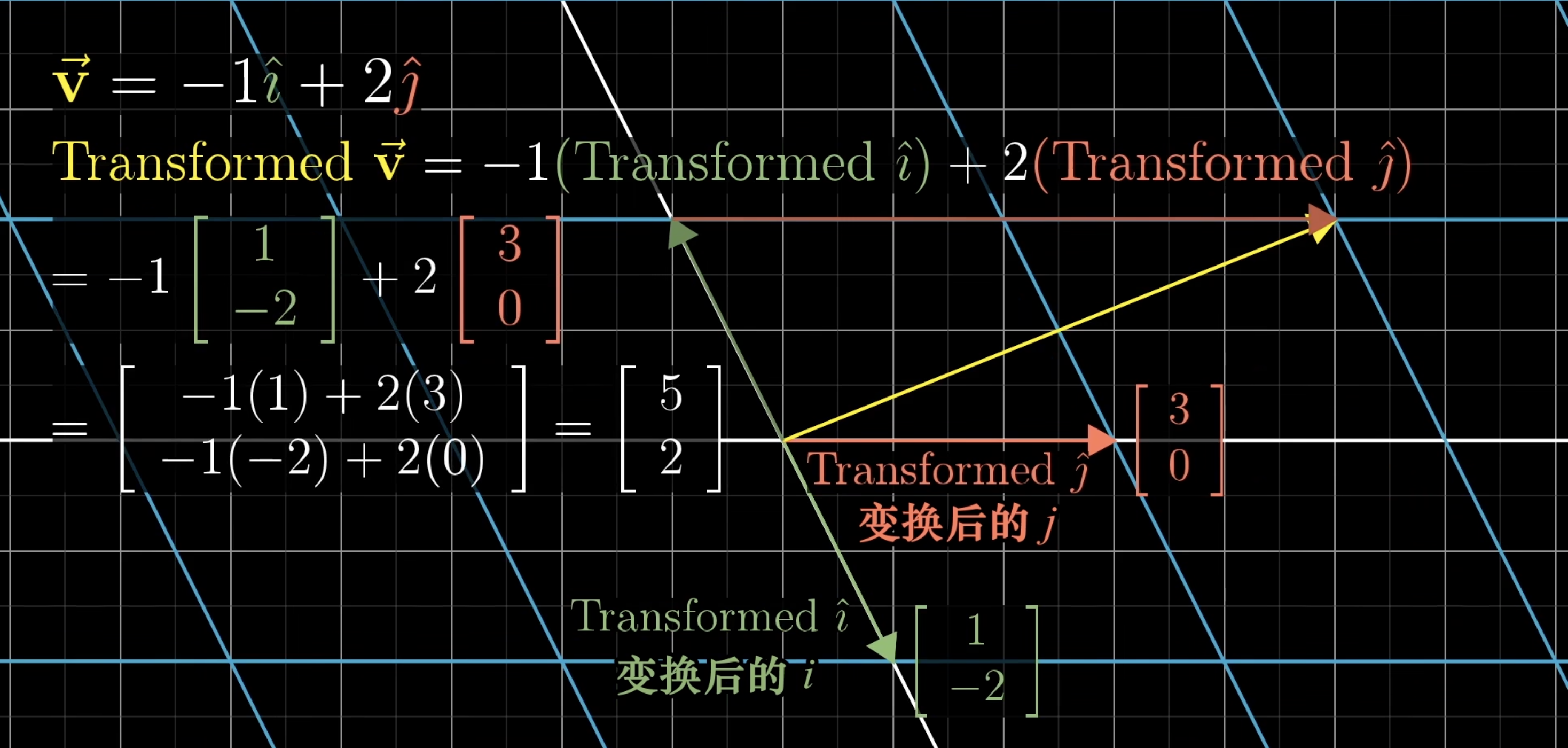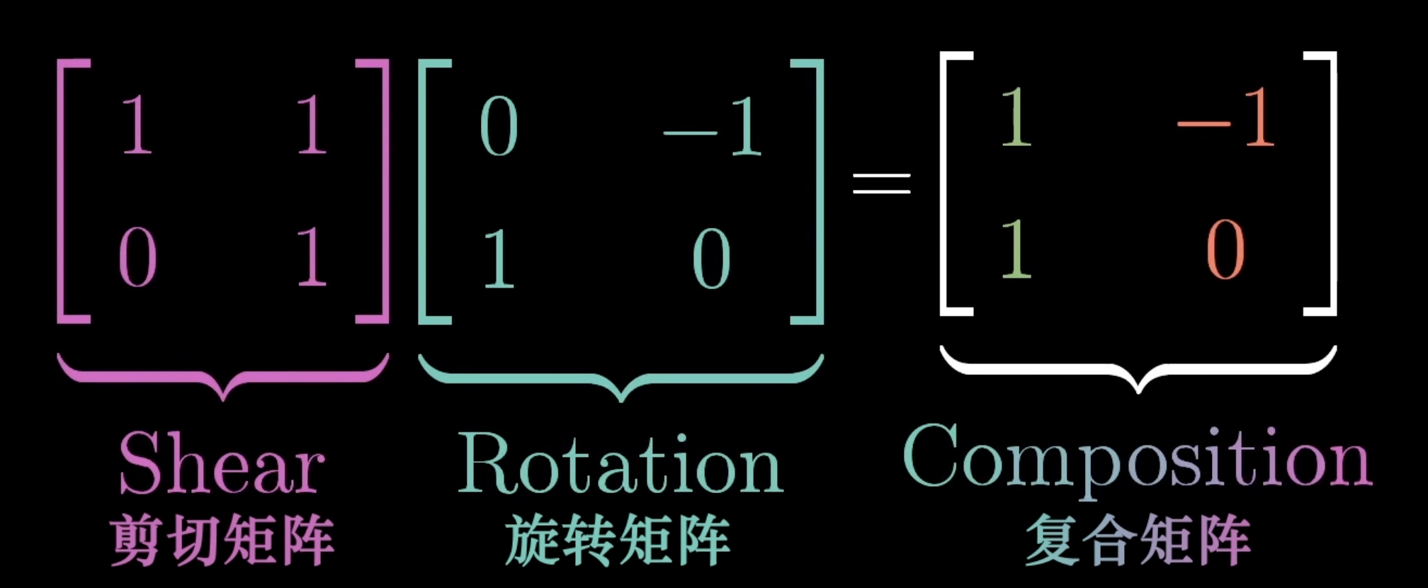 矩阵向量乘法就是计算线性变换作用于给定向量的一种途径(一个矩阵✖️一个向量,就是将线性变换作用于该向量)