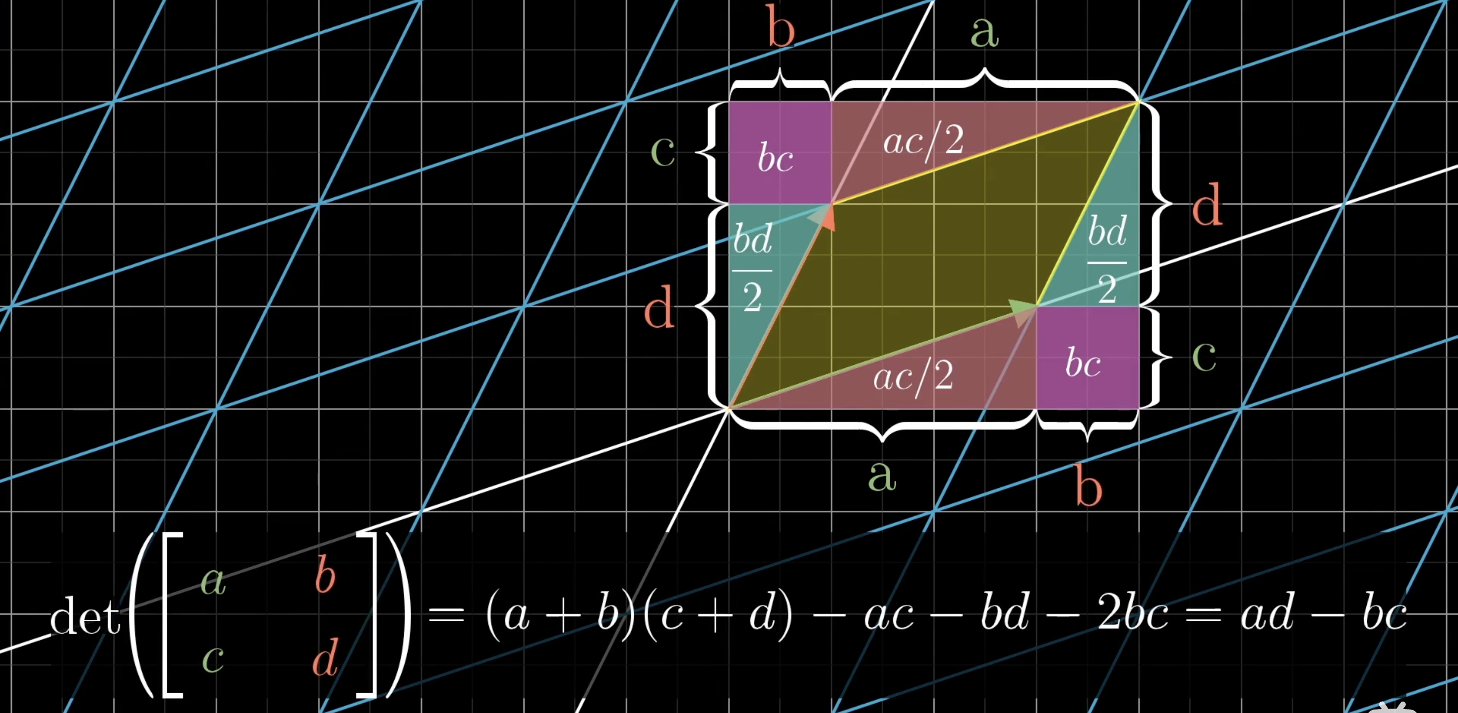 矩阵所带来的线性变换使得一个给定区域面积增大或者减小的比例。(三维就是体积)