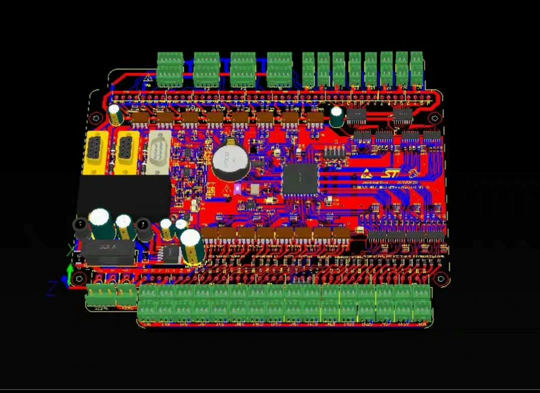 主控STM32F407ZET6控制板PLC工控板FX3U,FX5U,控制IO卡 STM32F407ZET6工控板,包括pcb,原理图 ,/PLC STMF32F407ZET6/FX-3U/PCB生产方案,喜欢可直接联系。 不提供。 板载资源介绍 1. 8路高速脉冲加方向输出,带光耦隔离 2. 16路低速输出,加光耦和驱动芯片uln2803输出,每路驱动电流可达500mA 3. 32路光耦隔离输入 4. 带编码器接口 5. 带spi接口铁电存储器 6. IIc接口存储器 7. 2路485,一路232 8. 24V供电。