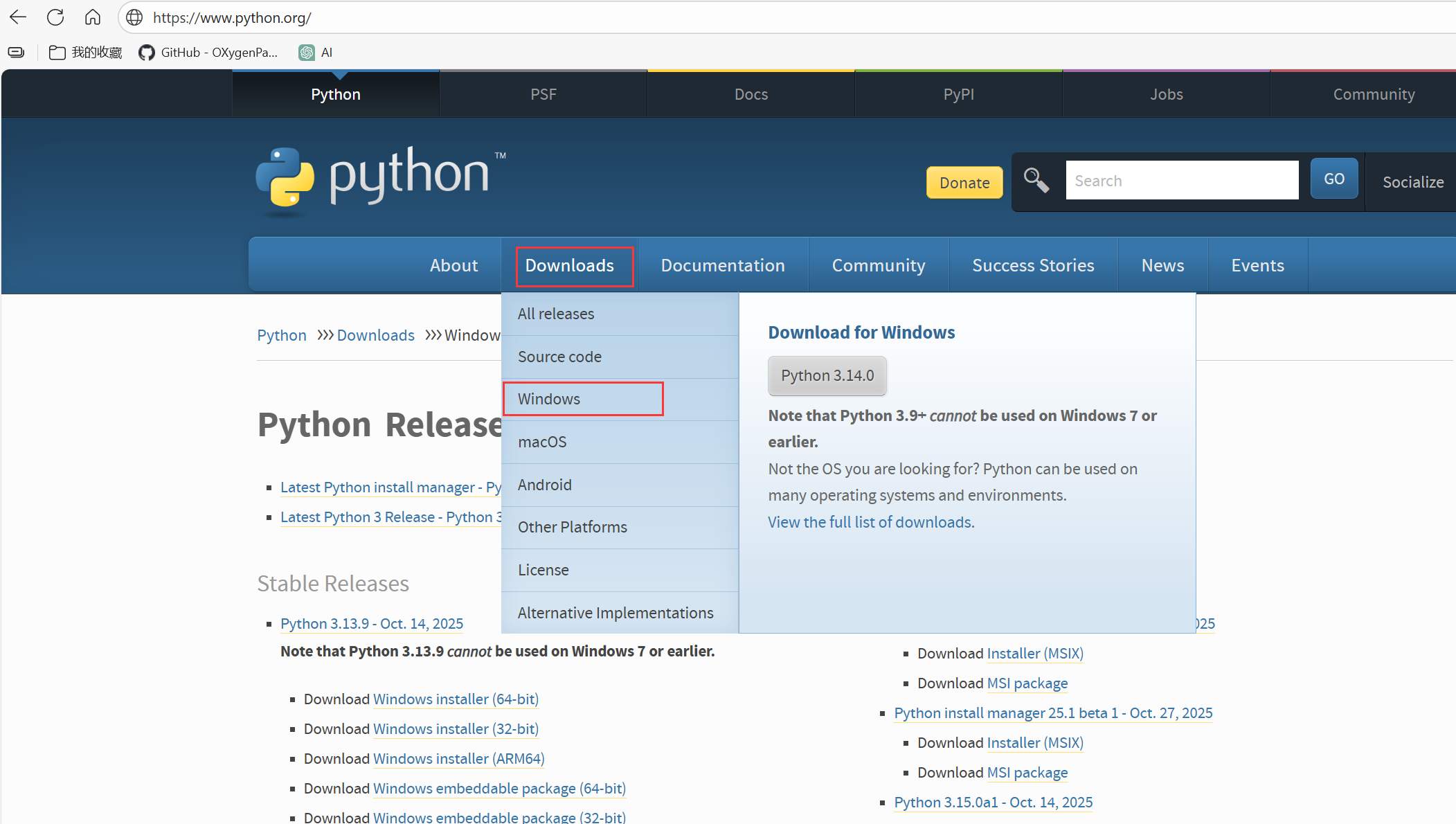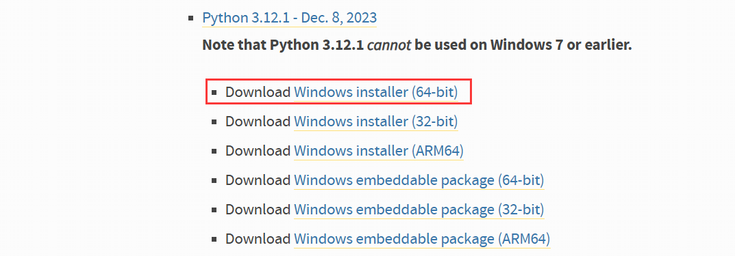 https://www.python.org/进入Pytnon官网,找到下载模块,选择自己对应的电脑系统,博主这里选择了windows系统,版本号我这里选择下载3.12.1版本。备注:网站是国外的,下载起来比较慢。