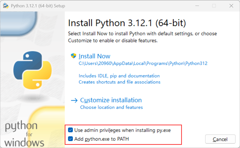 下载完成后双击运行,注意这里需要勾选,将python添加到我们电脑的环境变量中。然后点击install now。等待安装完成,提示successful即可安装成功。