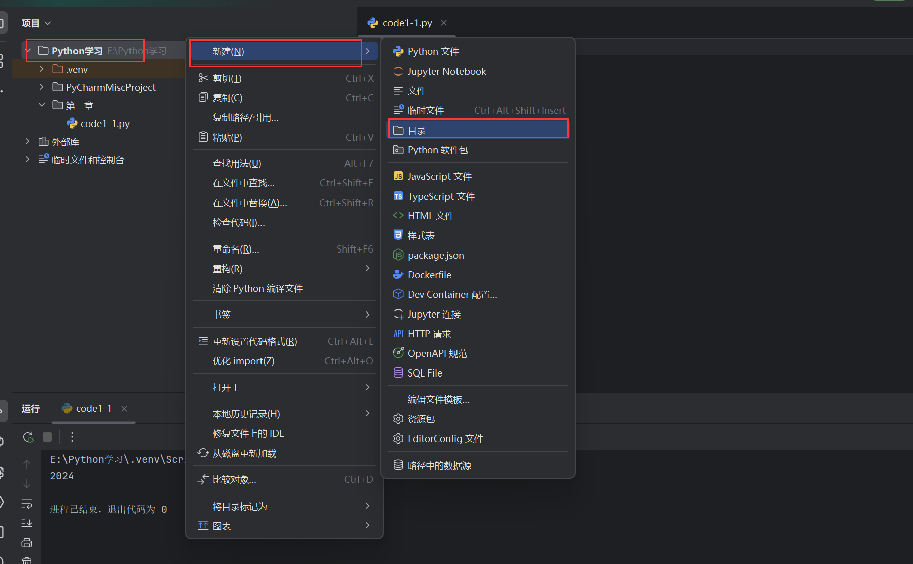 这里创建第一个目录,用于我们平时练习,右键创建目录。
