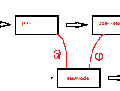 {assert(pos);// 制造一个新结点SLTNode* newNode = SLTNewNode(x);if (newNode == NULL){return;}// 下面的顺序不能翻转newNode->next = pos->next;pos->next = newNode;}// 链表pos位置之后删除