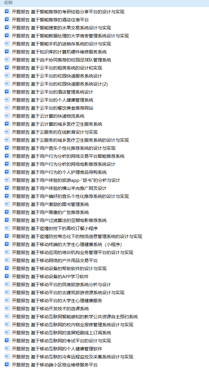 以上是H同学的毕业设计答辩过程,如果你现在还没有参加答辩,还是开题阶段,已经选好了题目不知道怎么写开题报告,可以下面找找有没有自己符合自己题目的开题报告内容,列表中的开题报告都是往届真实的开题报告可参考。