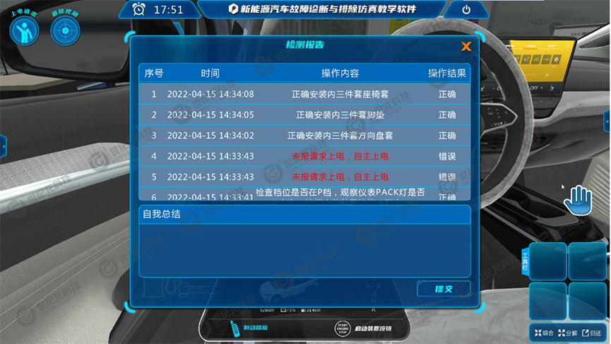 软件提供了多样化的自主实训引导方式。清晰的操作提示、贴心的语音辅助、便捷的视角切换等功能,如同一位耐心的导师,陪伴学生逐步探索。智能化的评分系统与详尽的在线记录单,能实时反馈操作情况,让每一次练习都方向明确,助力学生技能稳步提升。