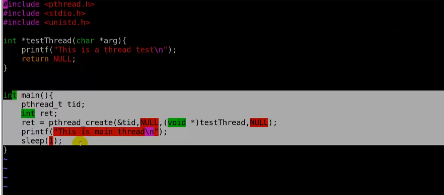 }int main() {pthread_t tid;pthread_create(&tid, NULL, func, NULL);pthread_join(tid, NULL);return 0;
