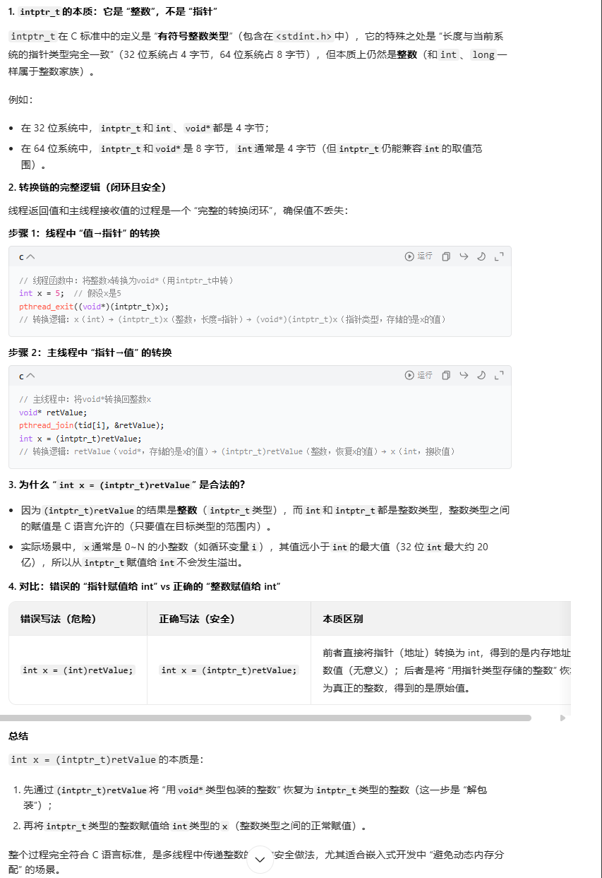 线程回收:主线程通过pthread_join回收子线程资源,程序进入主线程的while(1)循环,持续运行。三、关键知识点与注意事项